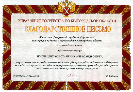 Росреестр неоднократно отмечал качество наших работ официальными благодарностями.